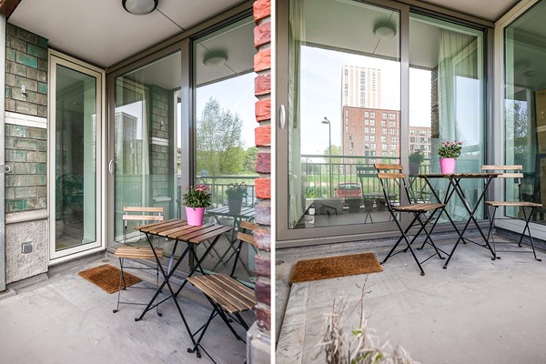 Het heerlijke balkon is een rustige plek om te genieten van de serene omgeving. Op vele momenten van de dag kan er genoten worden van dit knusse plekje. Ook is er een gezamenlijke daktuin aanwezig waar regelmatig BBQ's georganiseerd worden of mensen samenkomen voor een praatje, drankje of hapje.